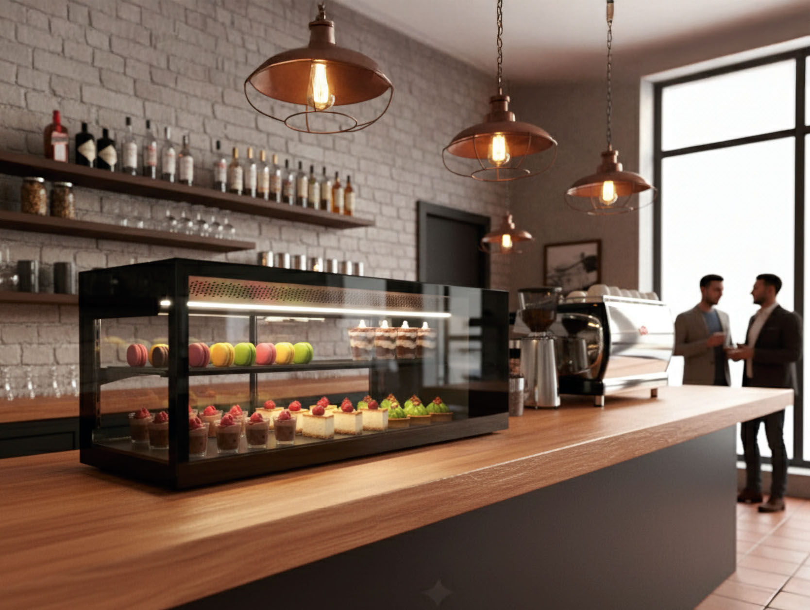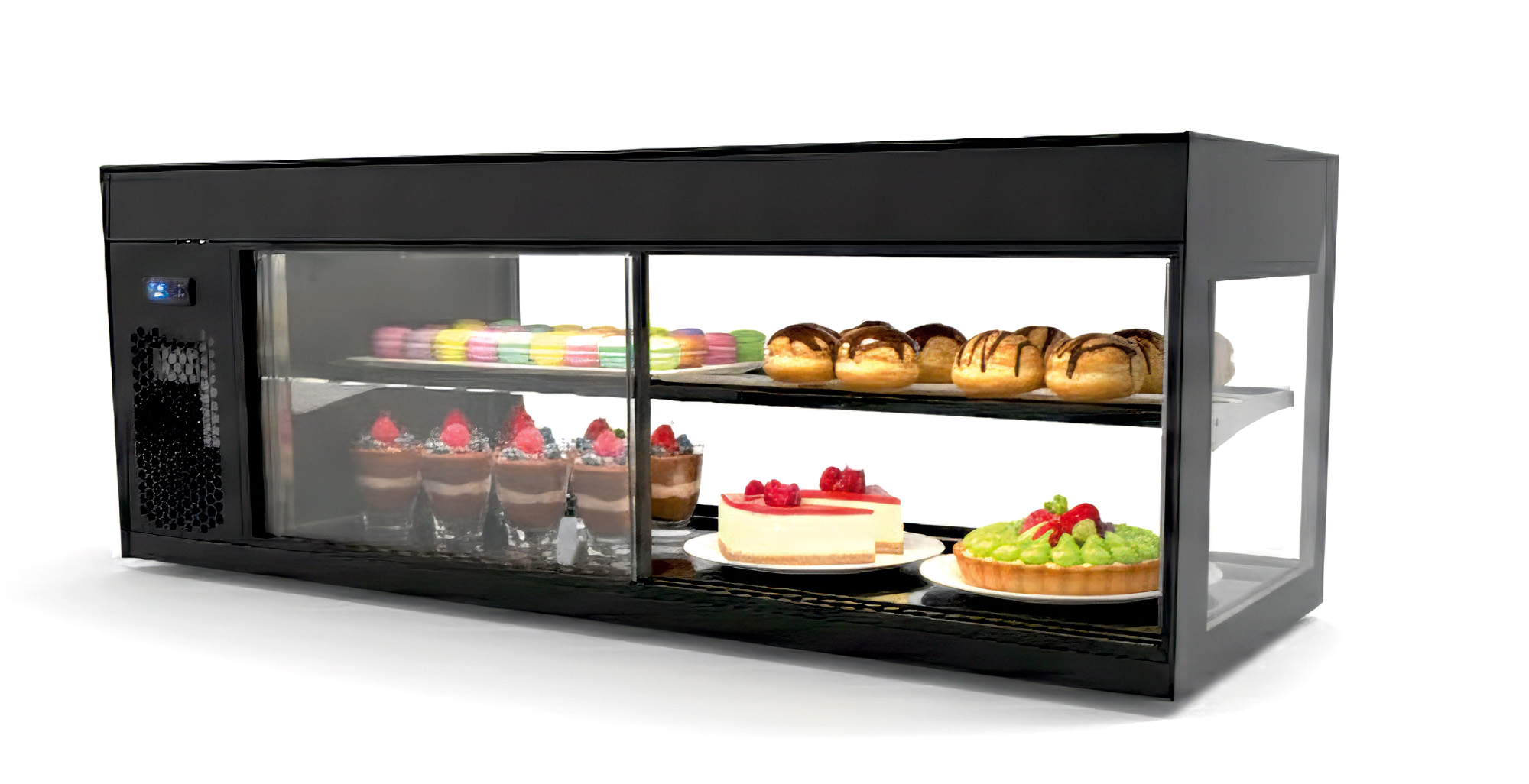 - Refrigerated display case for cooling and presenting tapas, cheese, desserts, cakes, salads, fruit or vegetables at the point of sale.