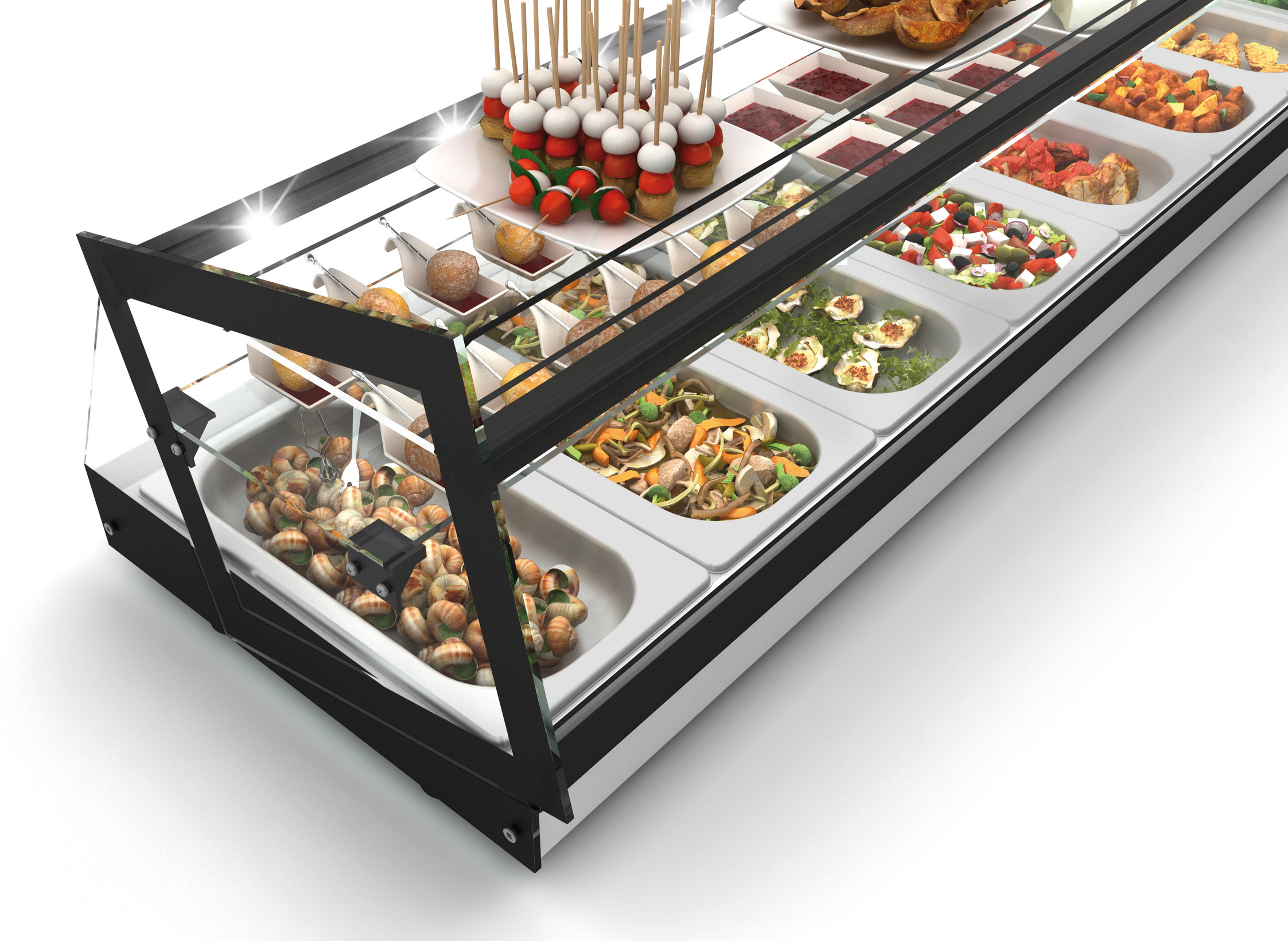 • 3 levels (cooled GN containers, inner glass shelf, top shelf)