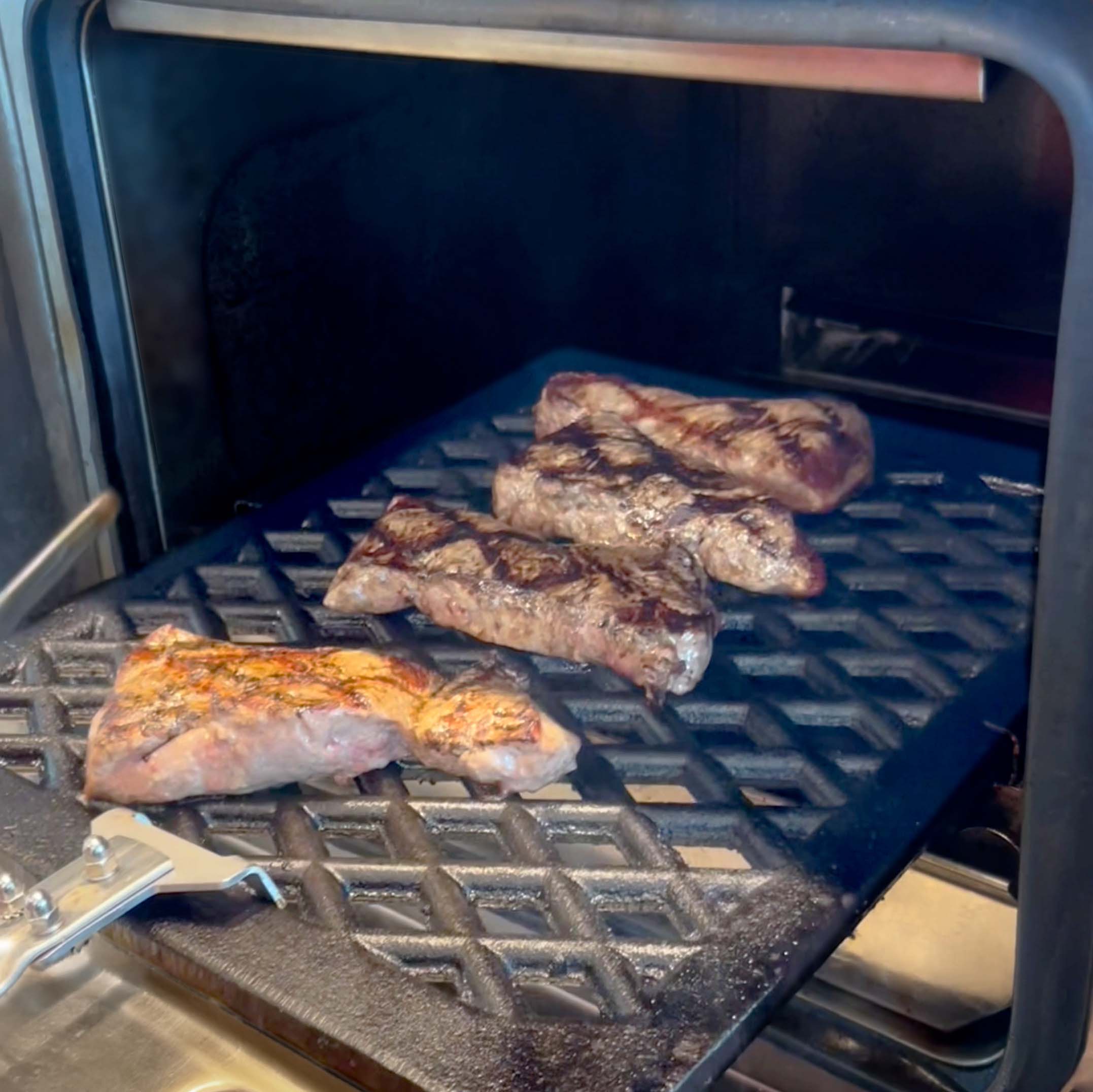 - Contact heat on the solid cast iron grid or on the griddle plate for crispy results, roasting flavours and a beautiful grill pattern on the food