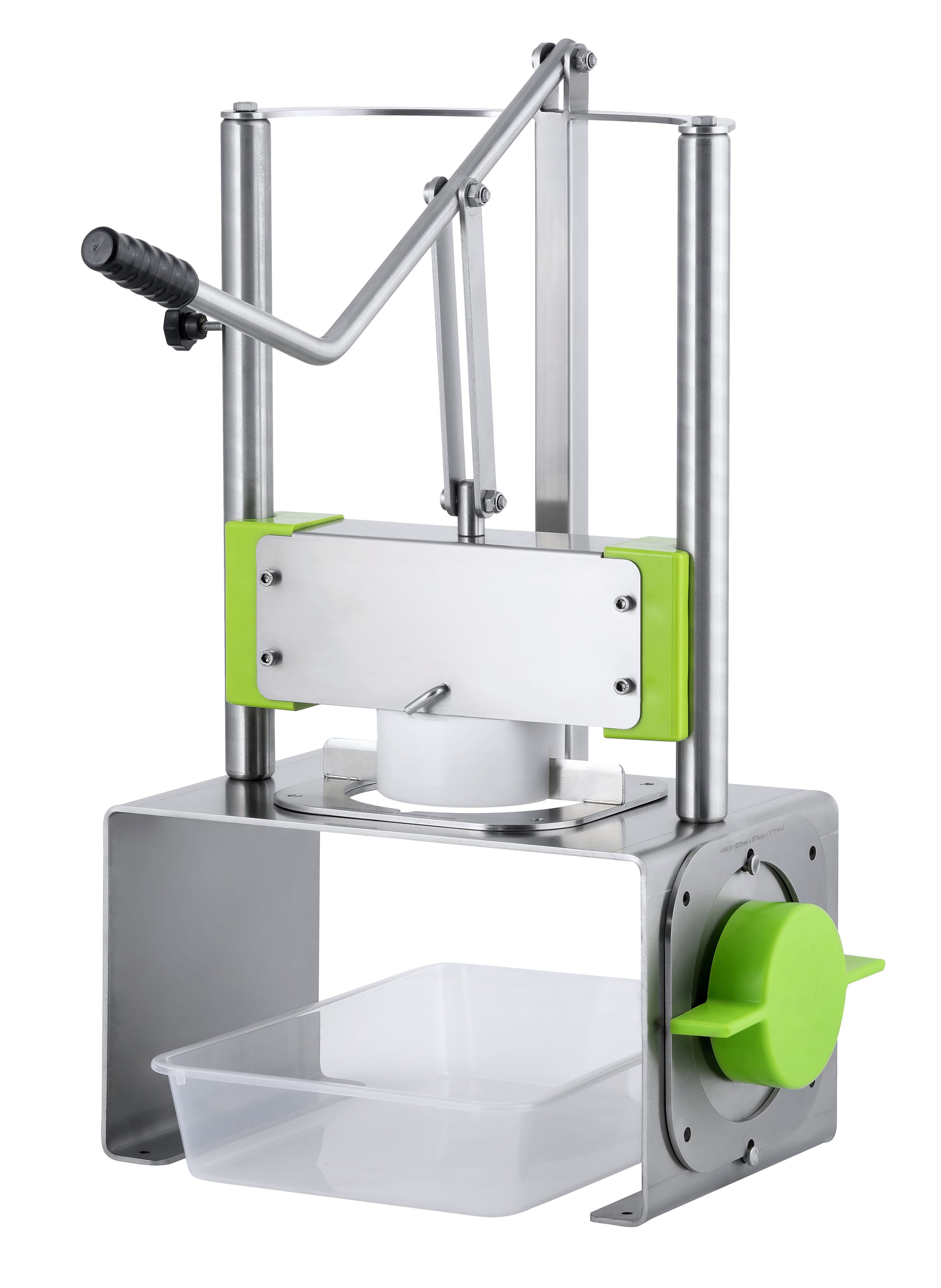 • Remove the peel and inner core from the pineapple with a press of the lever
