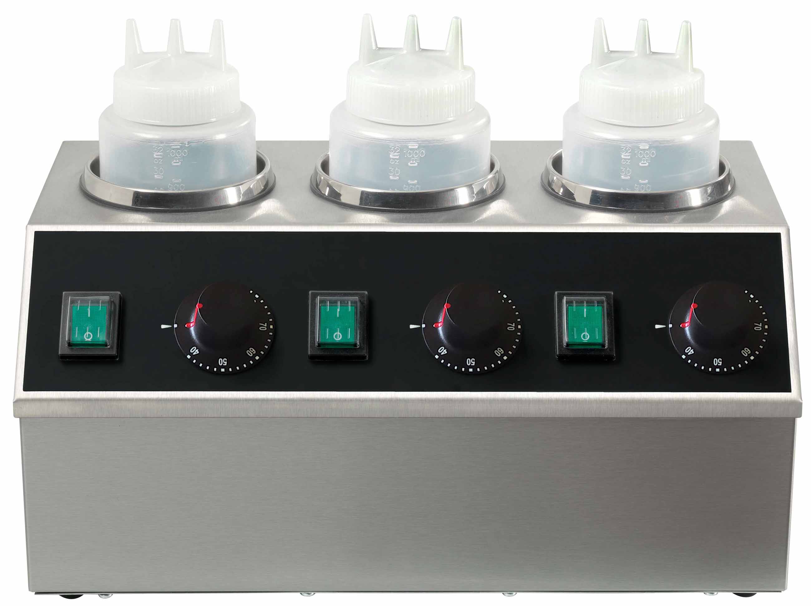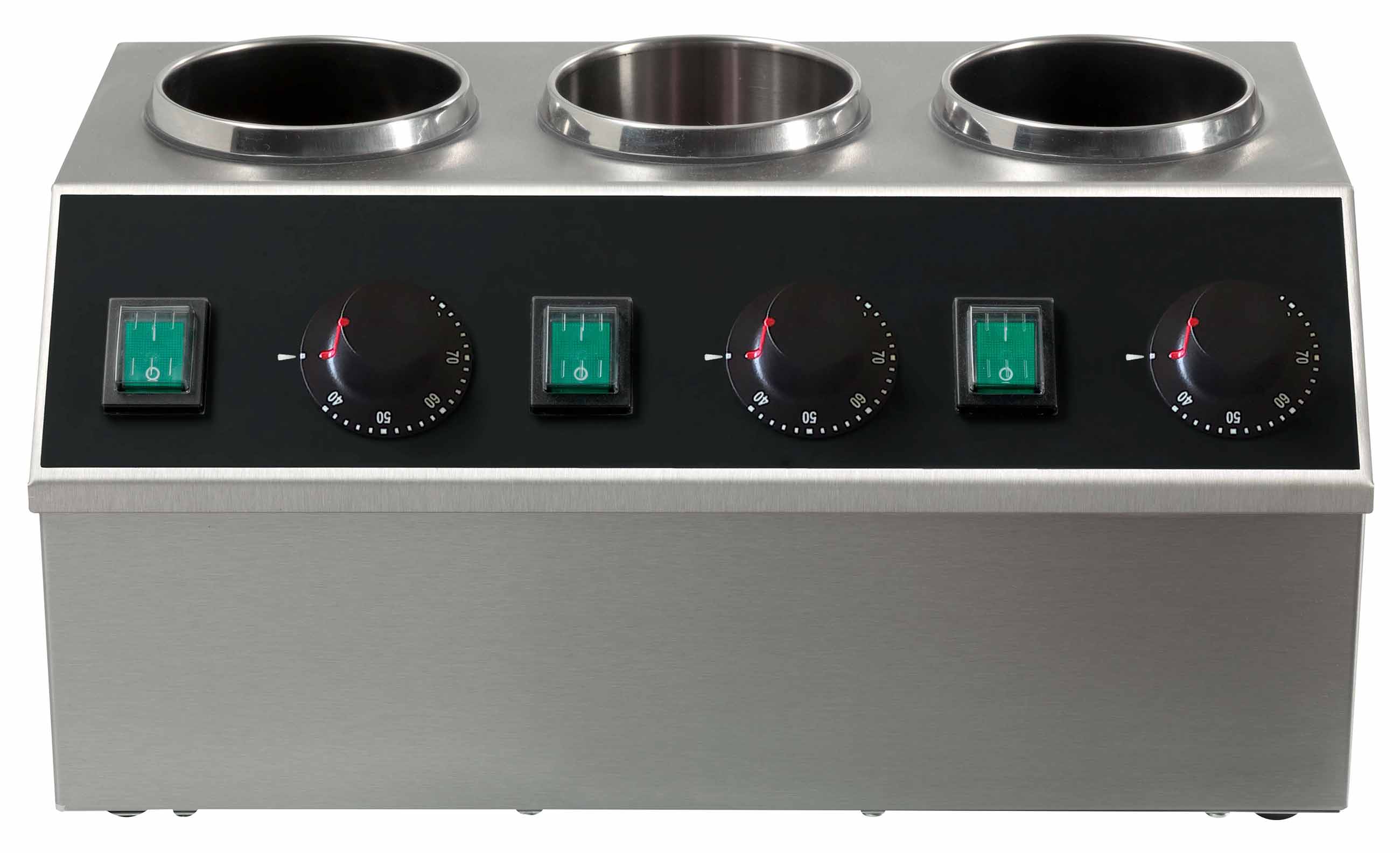 • For warm-keeping of hazelnut spreads and other toppings such as vanilla or caramel sauces