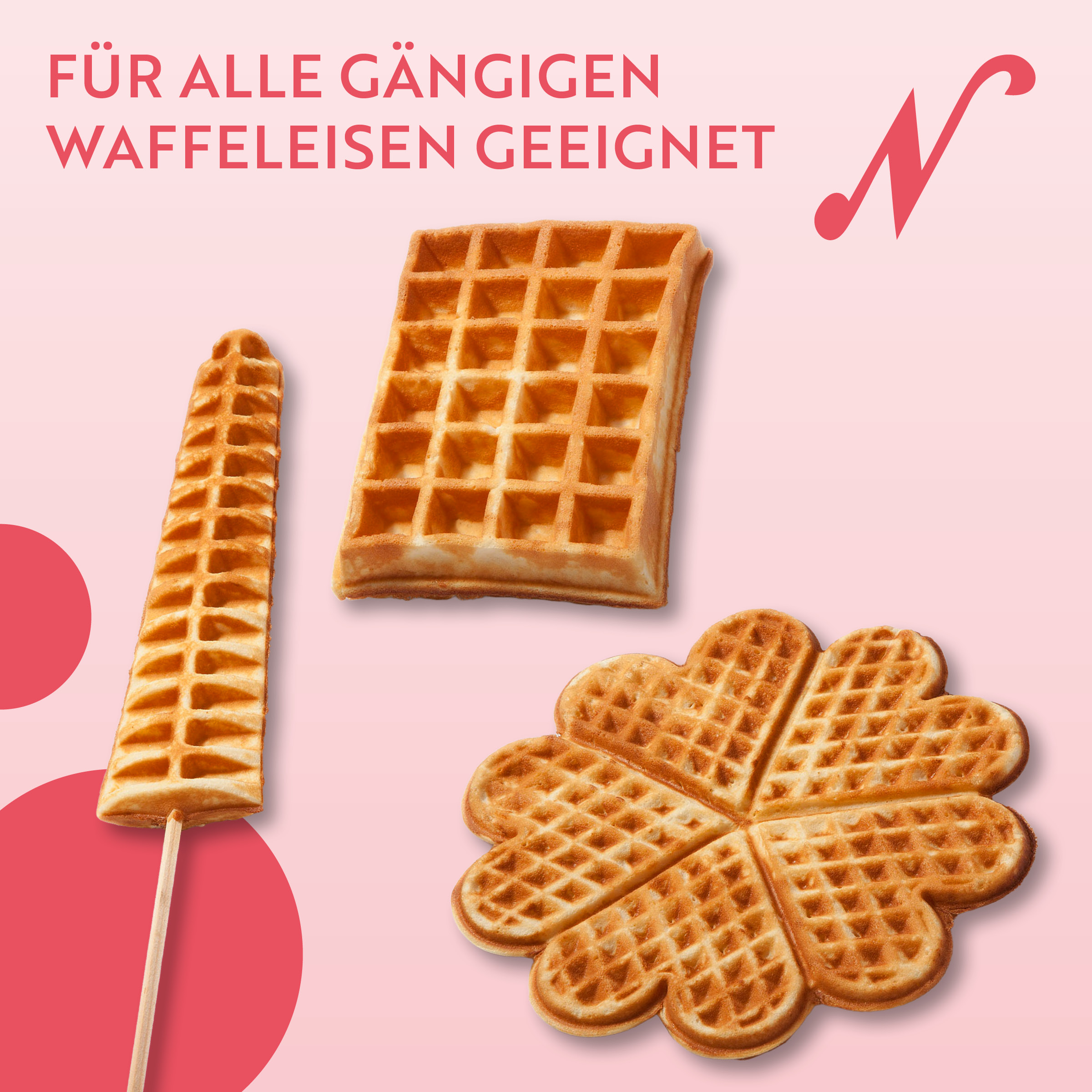 - Waffles: Preheat the waffle iron and lightly grease the plates. Pour portions of batter into the waffle iron and bake until golden brown (approx. 2 minutes at around 200 °C). Cooking times and temperatures may vary depending on the appliance.