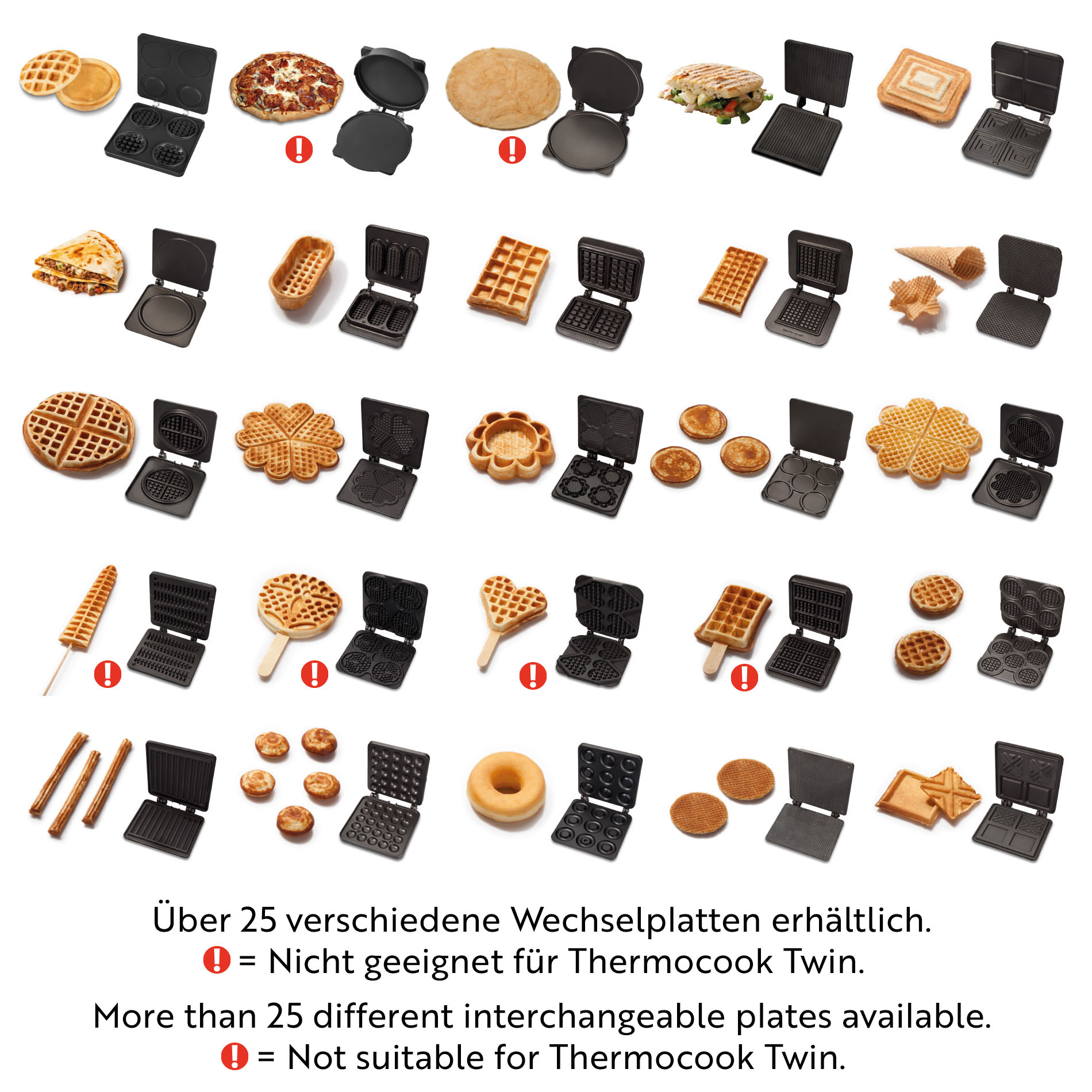 • Thermocook Twin is not suitable for the following interchangeable plates: Pizza, Crêpes, Waffles on a stick