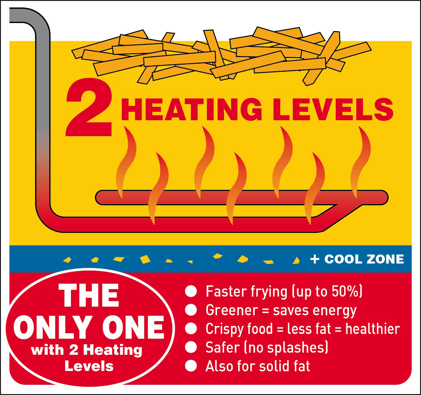 • 2-Level-Heizkörper: Schnelles Frittieren, Energieersparnisse, knusprigere Ergebnisse