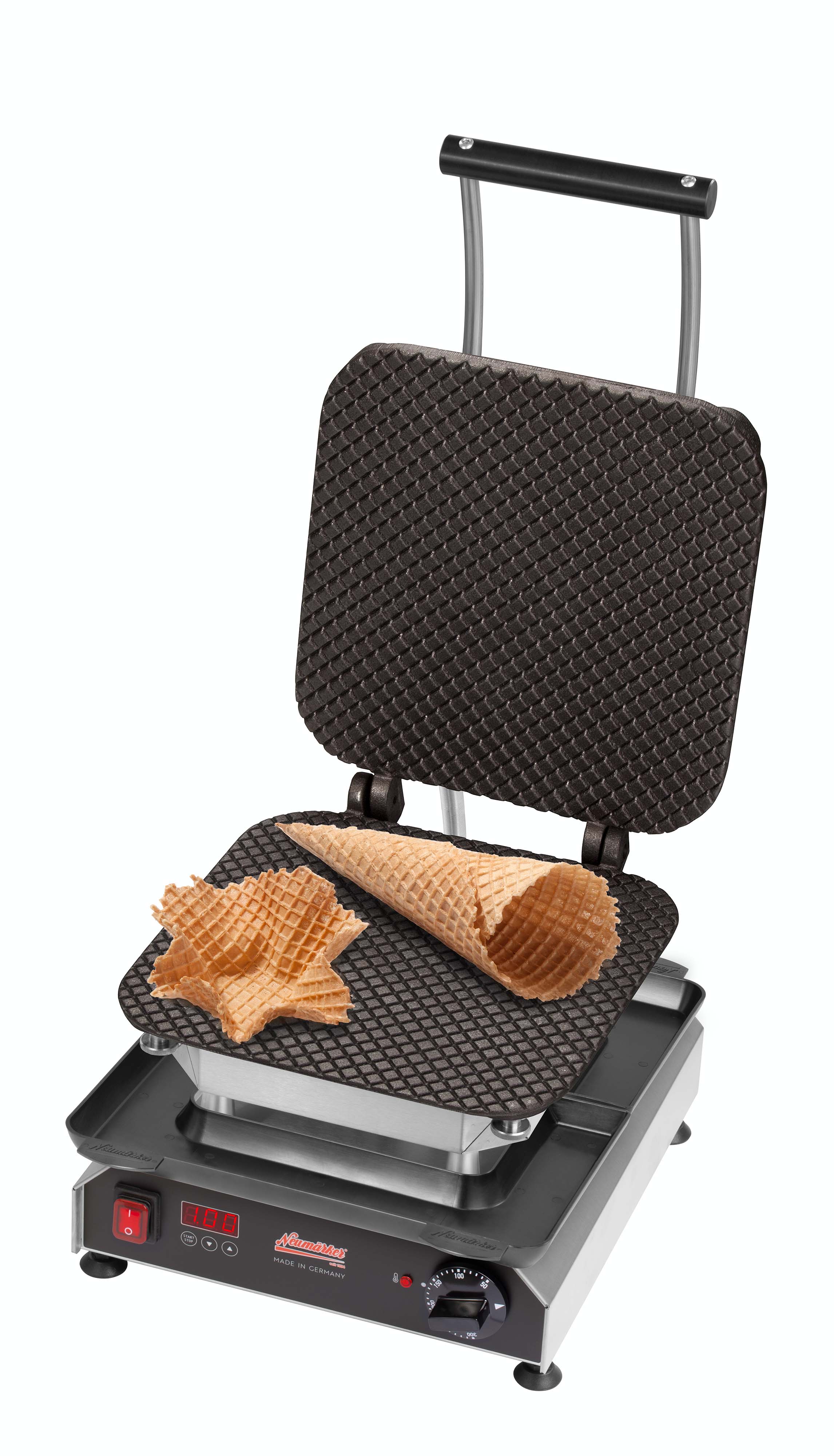 Ist Ihre Eiscreme bereits hausgemacht? Dann backen Sie doch Ihre Hörnchen und Schälchen auch selbst. Ihre Kunden werden es schätzen! Durch das neue, optimierte Gussverfahren der Backplatten werden die Eiswaffeln gleichmäßig dünn und knusprig.