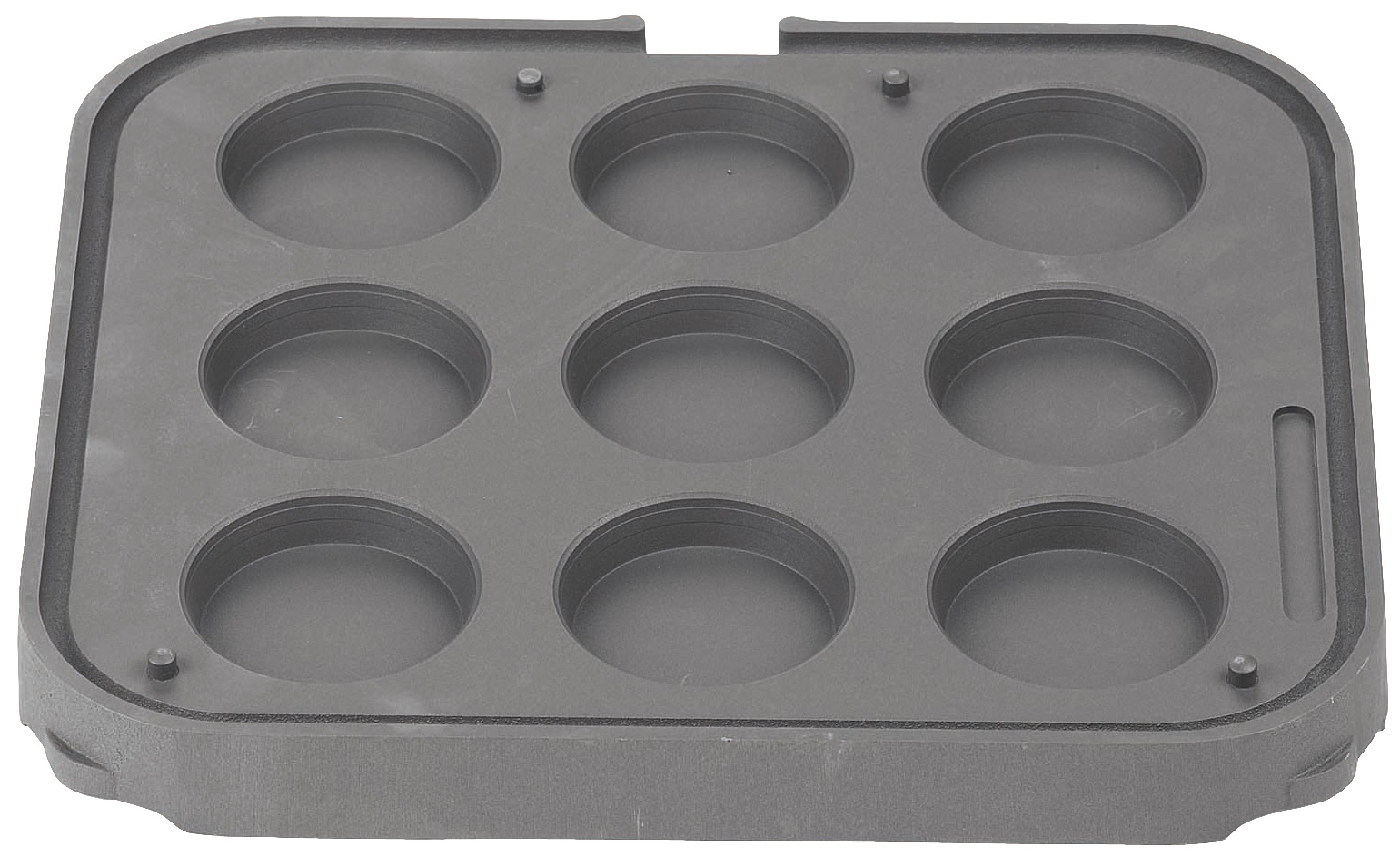 • Maße der einzelnen Mulden: oben Ø 90 mm, unten Ø 75 mm, Höhe 20 mm
