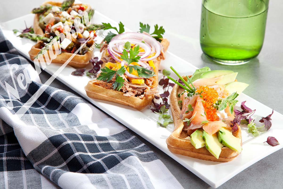 Backmischung für Kartoffelwaffeln. Kartoffelwaffeln sind außen knusprig und innen zart. Sie schmecken herzhaft kartoffelig mit einem leichten Hefearoma. Garniert mit Schinken, Käse, Quark, Lachs, Käse oder Apfelkompott sind sie ein idealer Snack für Märkte und Bistros. Vom Geschmack sind sie eine echte Alternative zu Reibekuchen. Aber einfacher in der Zubereitung. Ein neuer, wenig verbreiteter Snack, der Ihre Kunden neugierig macht.