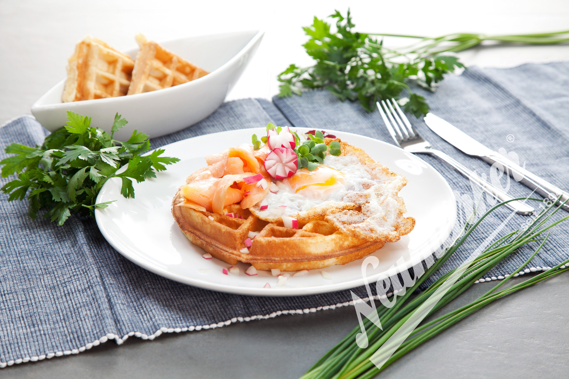 Die amerikanische Frühstückswaffel wird typischerweise mit Bacon und Ahornsirup serviert und ist sehr sättigend.