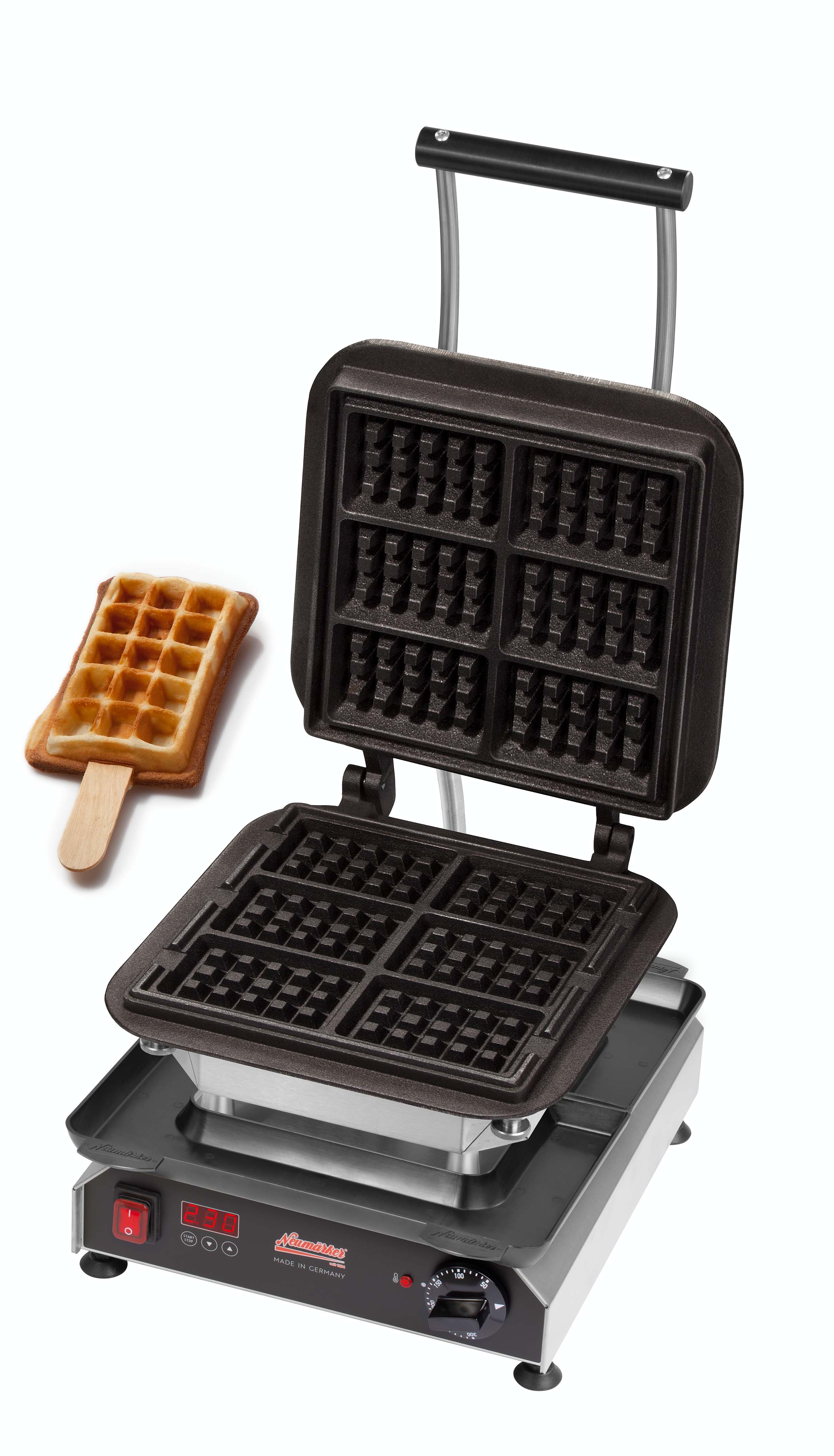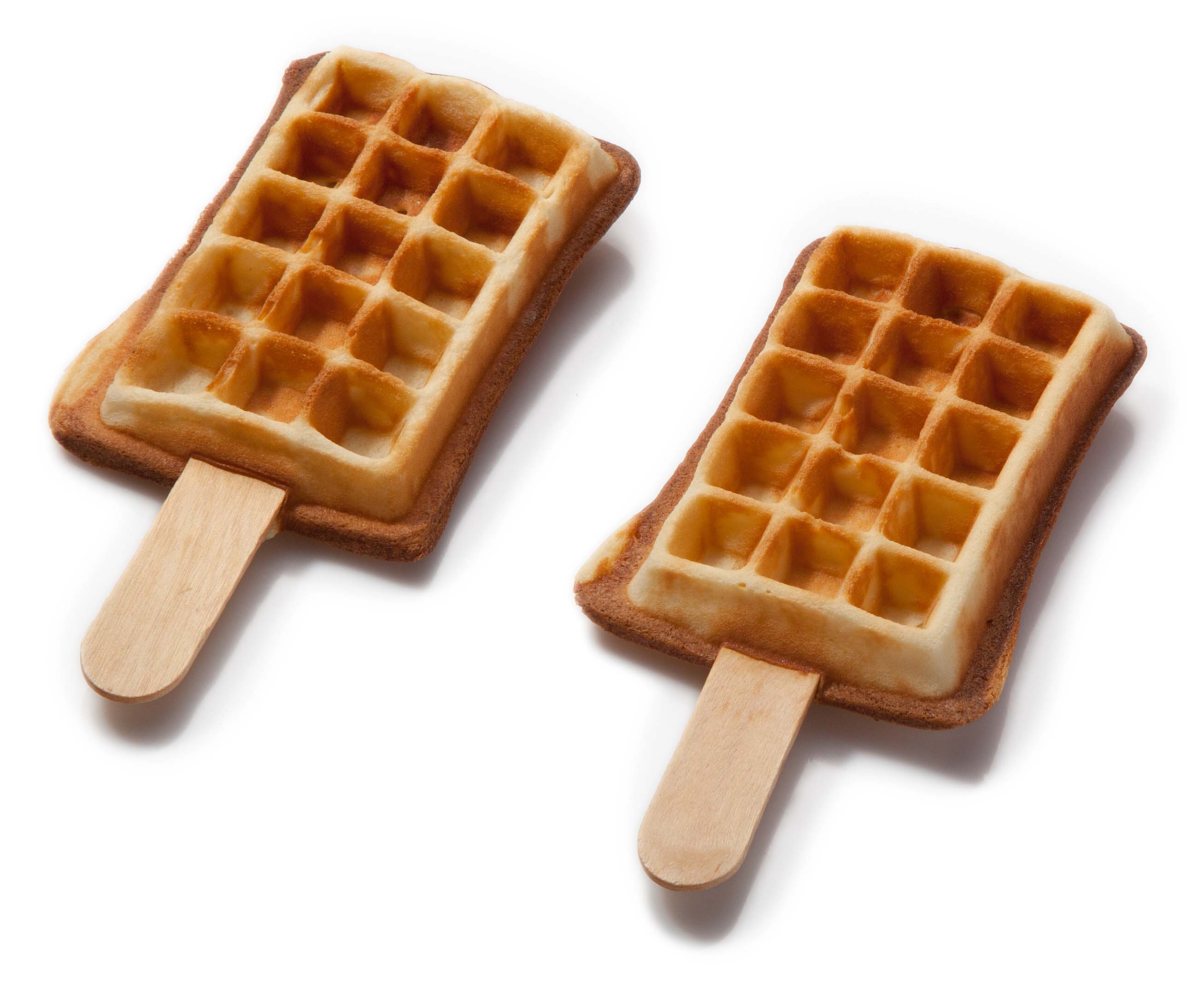 Kleine Waffeln am Stiel in der traditionellen, eckigen Waffelform. Ideale Portionsgröße für Kinder oder den kleinen Heißhunger.