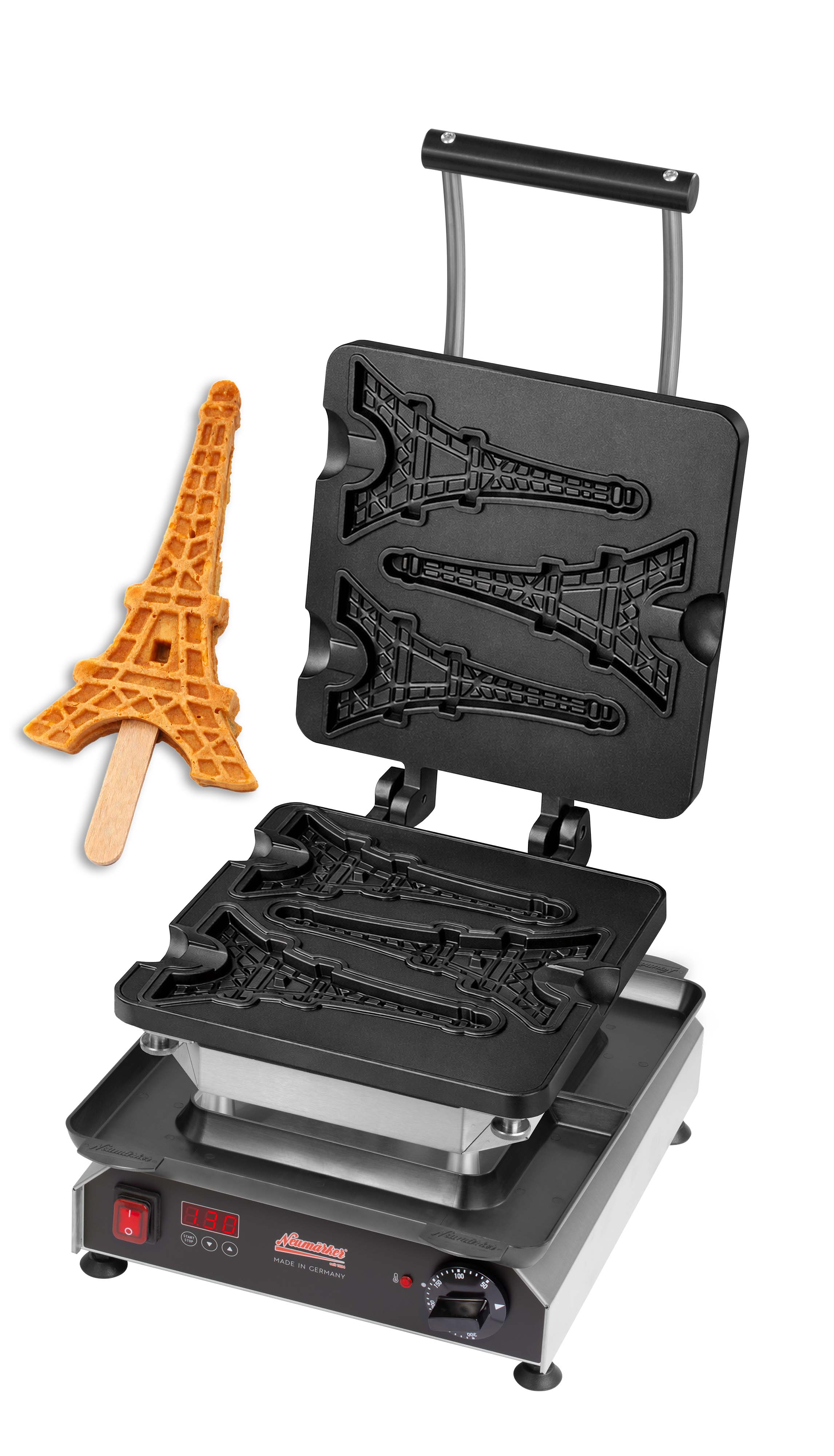 Mit den Eiffelturm-Waffel Wechselplatten zaubern Sie einzigartige Waffeln in ikonischer Form und bringen echtes Paris-Flair in Ihr Angebot. Die detailreiche Eiffelturm-Optik macht jede Waffel zu einem echten Hingucker und sorgt für hohe Aufmerksamkeit – ideal für Social Media und Impulskäufe. Knusprig gebacken und perfekt geeignet für den Verzehr am Stiel, eignen sich die Eiffelturm-Waffeln hervorragend für den To-go-Verkauf. Ob pur, mit Toppings oder kreativ dekoriert: Diese Spezialität schafft ein besonderes Erlebnis für Ihre Gäste und hebt Ihr Sortiment deutlich vom Wettbewerb ab. Ideal für Cafés, Events, Freizeitparks oder moderne Streetfood-Konzepte.